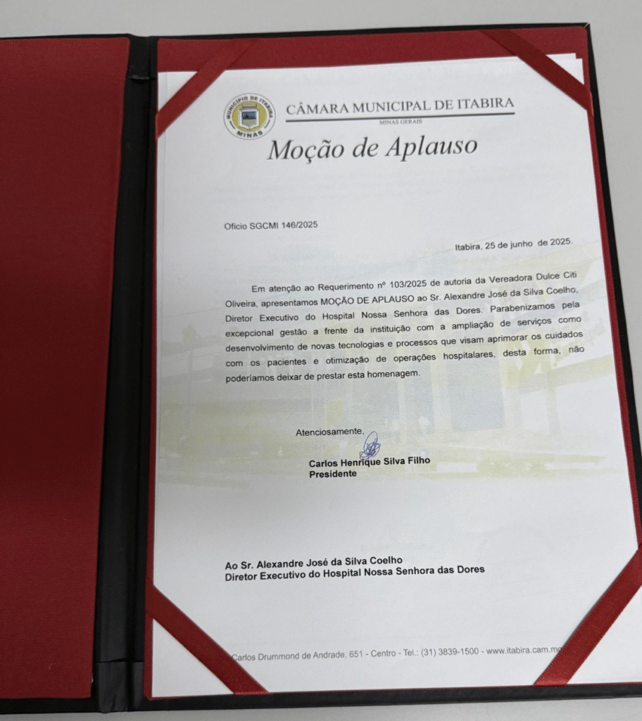 “Receber essa Moção de Aplausos é uma honra enorme. Agradeço profundamente à vereadora Dulce City por esse reconhecimento, que estendo a toda a equipe do HNSD. Cada profissional aqui faz parte dessa conquista. Essa homenagem nos fortalece e nos motiva ainda mais.”