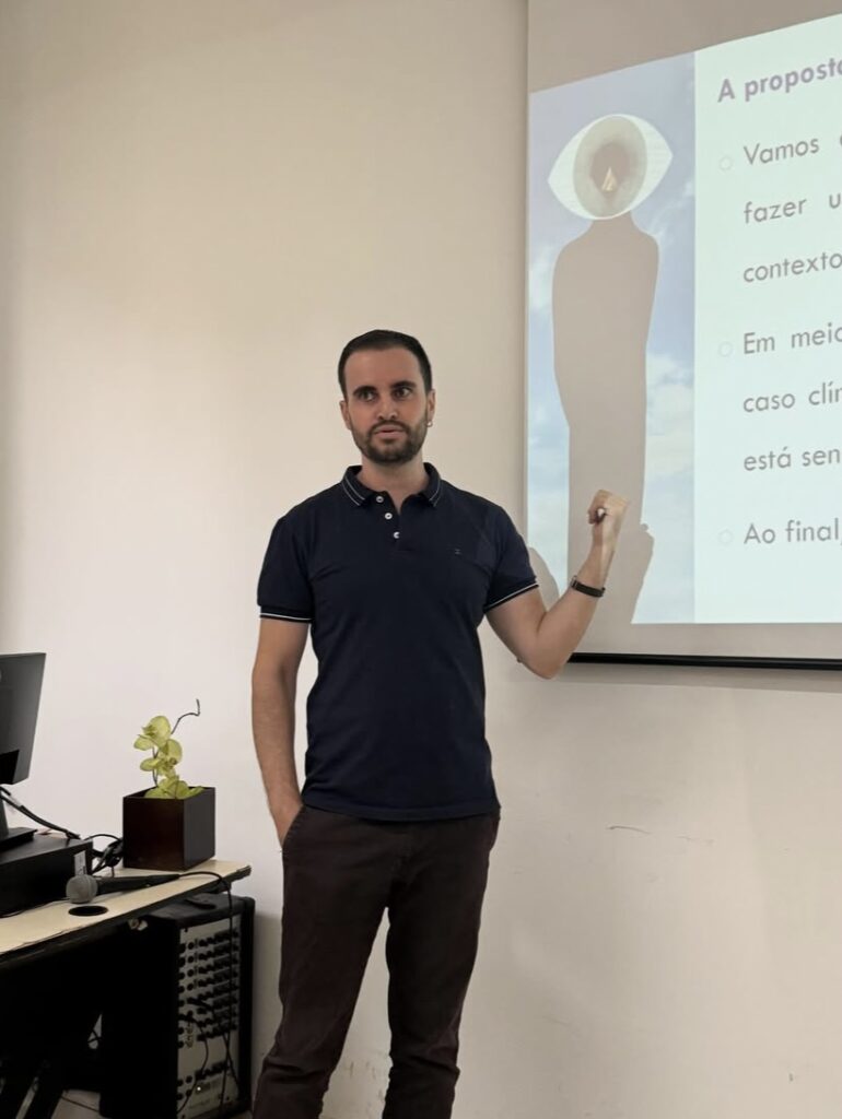 O Prof. Arthur Kelles Andrade, psicólogo e professor da UFMG, conduziu a palestra “Comunicação de más notícias: o papel da empatia”, reforçando a importância da escuta ativa, da presença emocional e do acolhimento no momento de transmitir informações difíceis: “A empatia está em sustentar o sofrimento do outro com presença e escuta. Comunicar bem é também cuidar”, explicou.