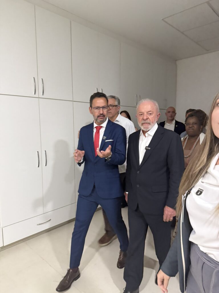 Durante a visita, o diretor executivo do HNSD, Alexandre Coelho, acompanhou o presidente e o ministro pelo novo setor e explicou o funcionamento da Radioterapia, destacando o quanto o serviço vai transformar a rotina dos pacientes que antes precisavam se deslocar para Belo Horizonte. O físico-médico, Dr. Hugo Lemos também apresentou o acelerador linear, detalhando a tecnologia empregada e os benefícios do equipamento no tratamento do câncer. Ao ouvir os relatos, o presidente recordou sua própria experiência durante o período em que esteve em tratamento oncológico, reforçando a importância de ampliar o acesso à terapia em regiões como Itabira.
